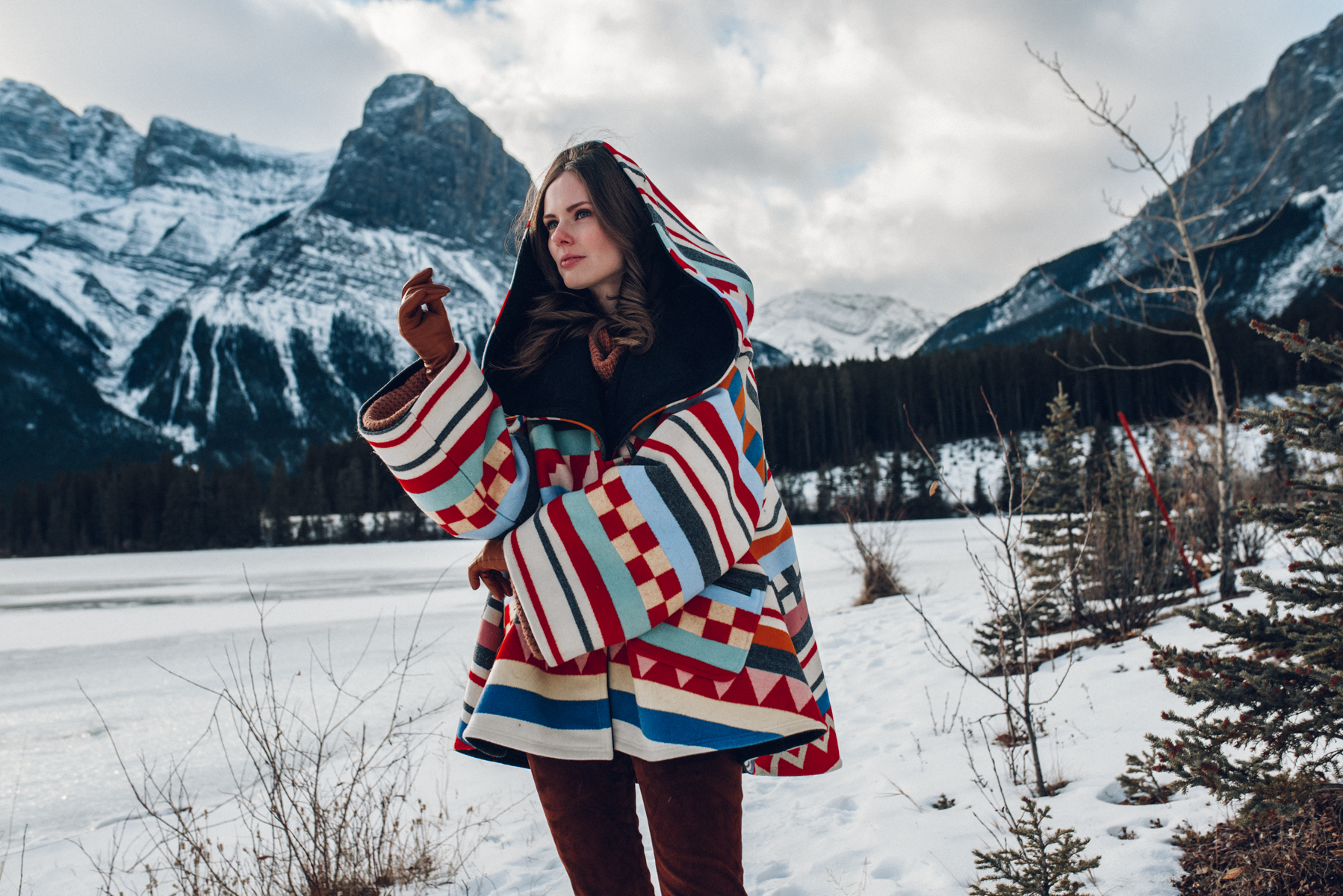 Alyssa Campanella of The A List blog sharing why I've stopped calling myself a blogger wearing Lindsey Thornburg cape in Alberta, Canada