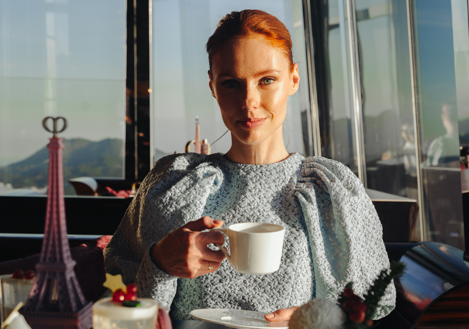103 floors up above the busy city streets of Kowloon, we were treated to an elegant afternoon tea at Café 103 for the Frosted City of Dreamlight Afternoon Tea. Even though the entire skyline of Hong Kong is visible from the 103rd floor at the Ritz Carlton Hong Kong, it’s the city of Paris that is the highlight here, with French artist Jean Dalin collaborating on this exquisite collection. Hues of metallic purples and feminine pinks dominate both the beauty collection and the tea set, giving you the sense that you’re enjoying an afternoon treat in France rather than Hong Kong.