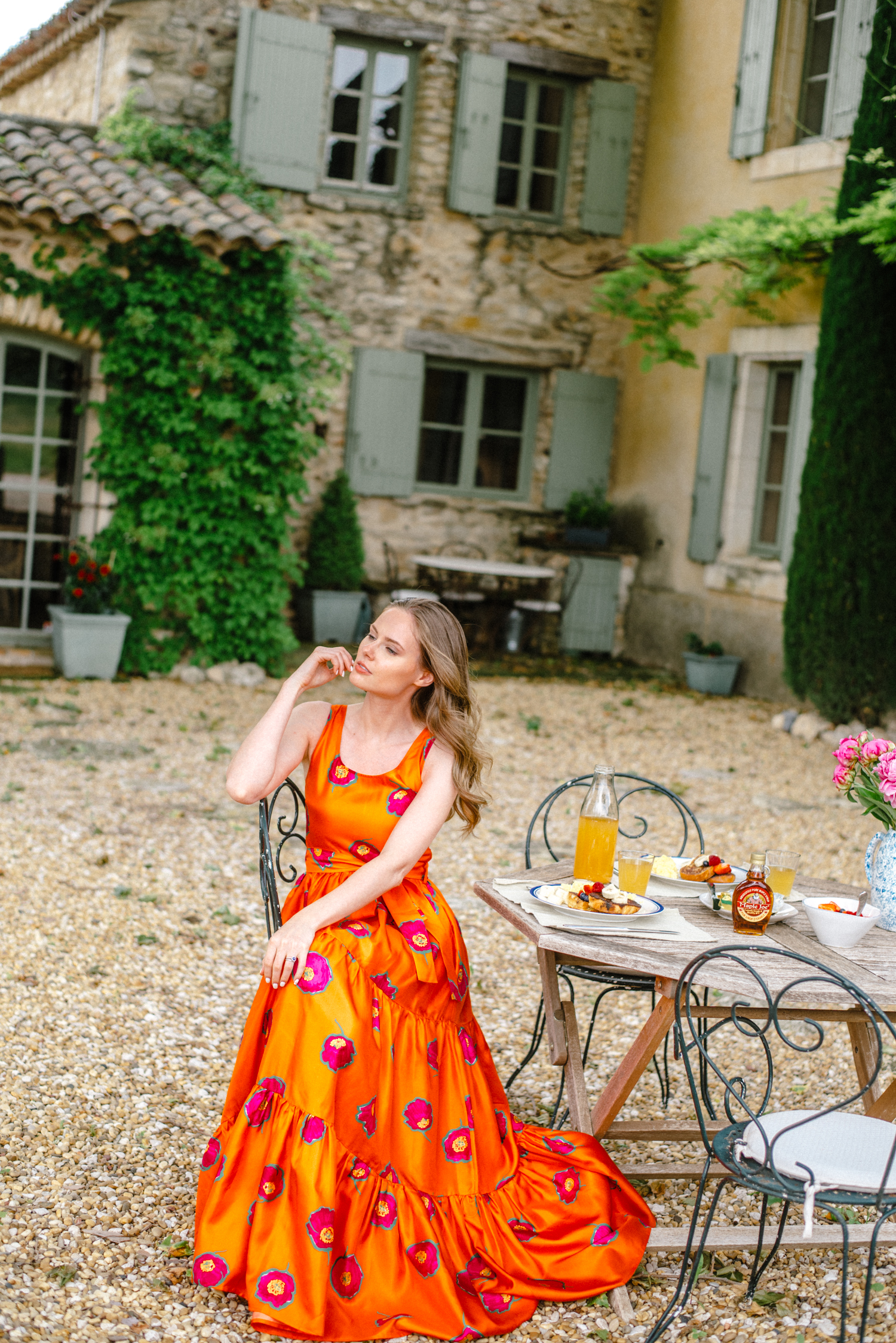 Alyssa Campanella of The A List blog wears the LA Double J Pellicano dress at her Haven In villa in Bonnieux
