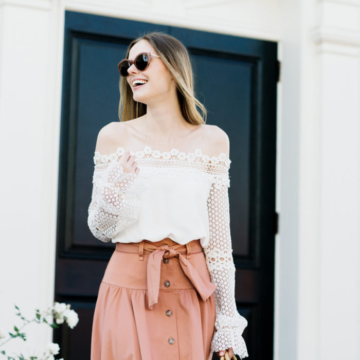 When I think about Fourth of July style, I usually think of blue and white stripes with a strong red lip and red accessories. I couldn’t pass the chance to don layers of ruffles, as ruffles have been a huge trend this year, so I paired a ruffle white shirt with one of my favorite skirts of the season. I’m also a fan of red and white stripes too, particularly dresses such as this one and I LOVE this one (and it’s on sale!). The beauty about all of these pieces is they can be worn all summer long.