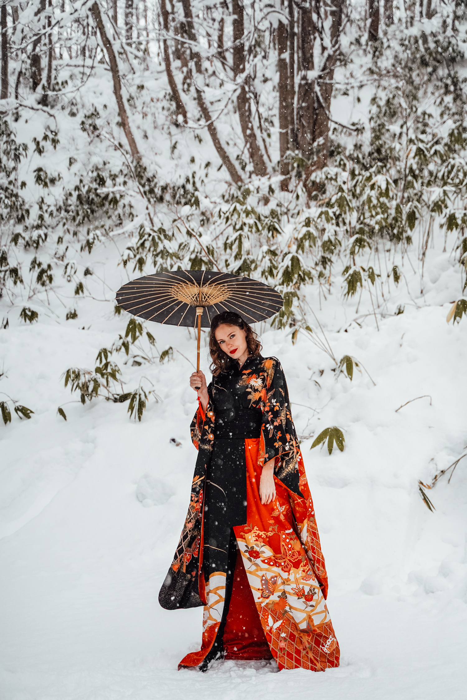 Alyssa Campanella of The A List blog wears a Japanese kimono furisode in Hokkaido, Japan