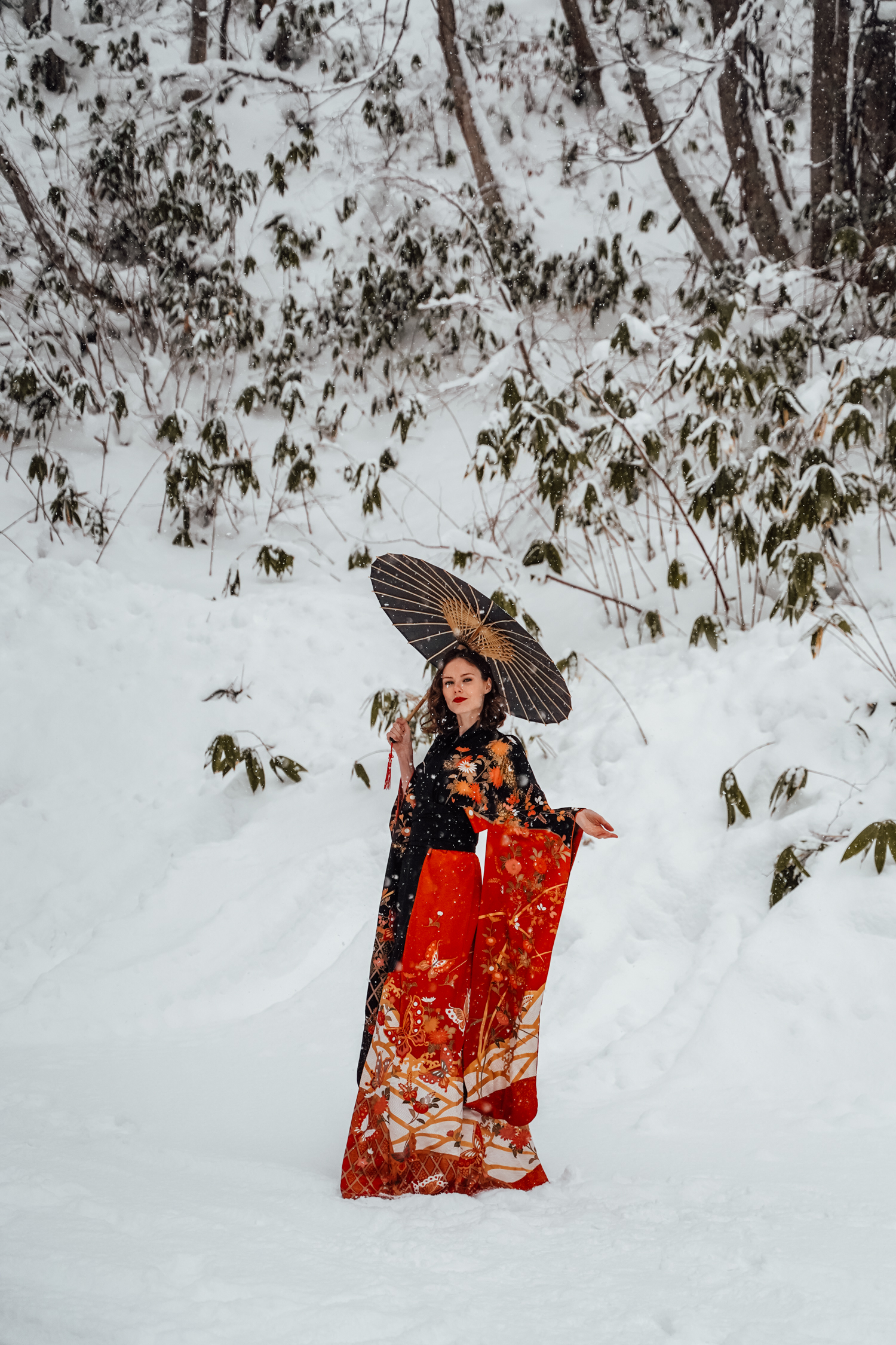 Alyssa Campanella of The A List blog wears a Japanese kimono furisode in Hokkaido, Japan
