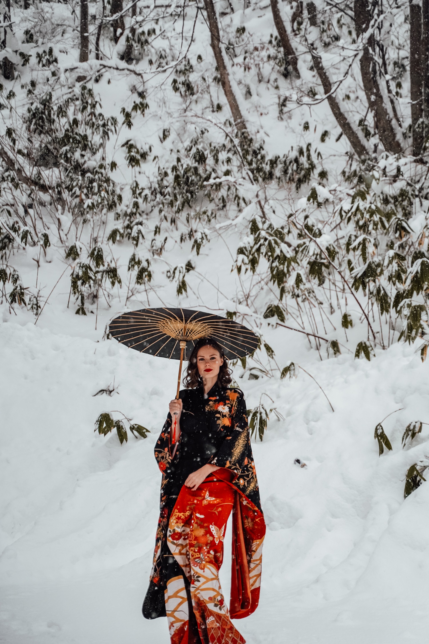 Alyssa Campanella of The A List blog wears a Japanese kimono furisode in Hokkaido, Japan