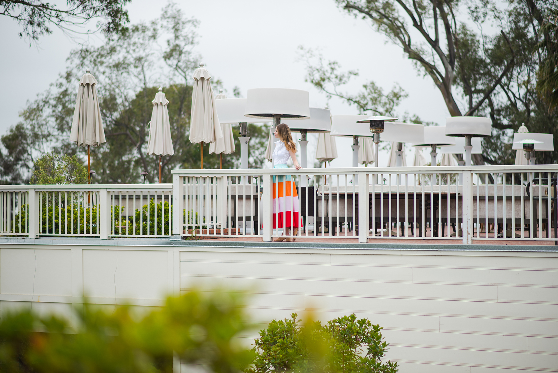 Miss USA 2011 Alyssa Campanella of The A List blog wears MDS Stripes Colorblock skirt at Belmond El Encanto in Santa Barbara