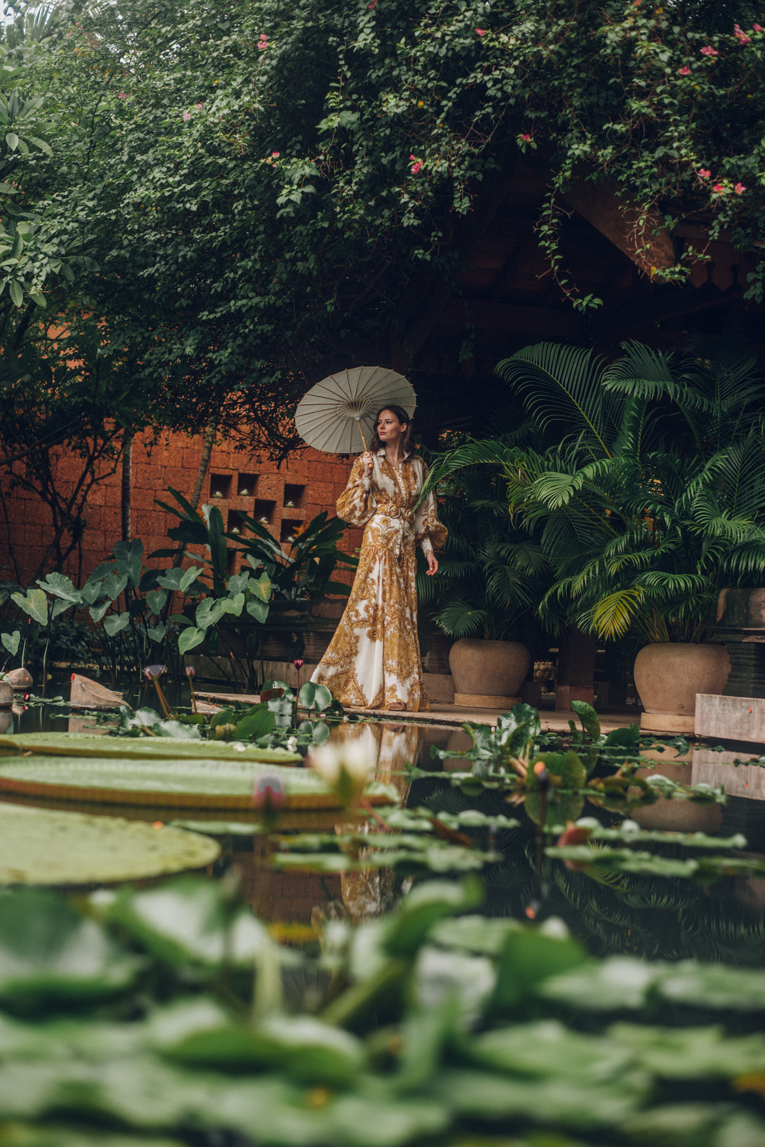 Miss USA 2011 Alyssa Campanella visits Siem Reap, Cambodia at Belmond La Résidence D'Angkor wearing Zimmermann