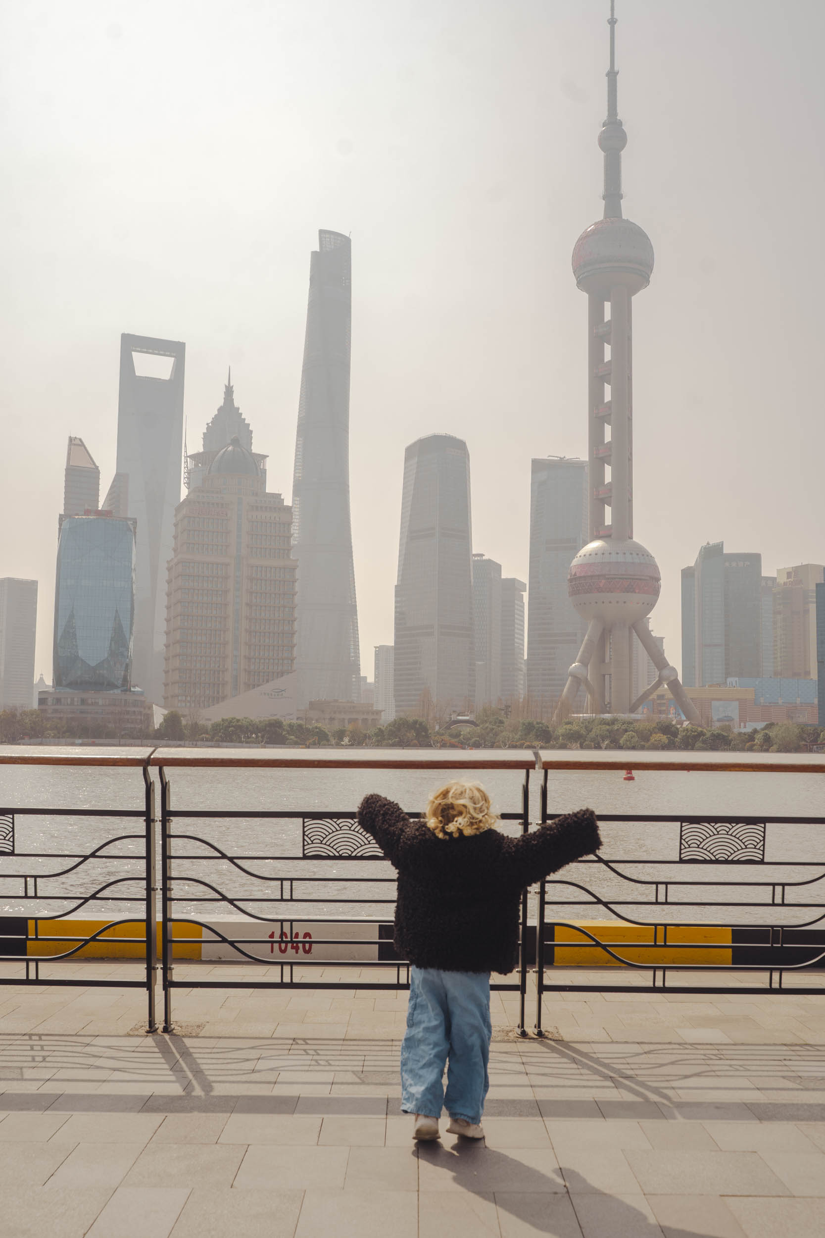 It’s no secret that the most popular spot in all of Shanghai is the famous Bund. Stretching a couple of miles, it’s the best way to get the most impressive view of the Shanghai skyline. It is also home to several cafes, luxury shopping, and a plethora of hotels. With the foot traffic in the Bund being notoriously high and sometimes hard to navigate through, we chose to admire Shanghai via the North Bund, which is at the northern end of the riverside. While there are still people there with the same idea, it’s certainly less chaotic than the main area. Plus, there’s a Manner Coffee here overlooking the skyline. I can’t imagine a better view while sipping my hot chocolate with my husband and daughter.