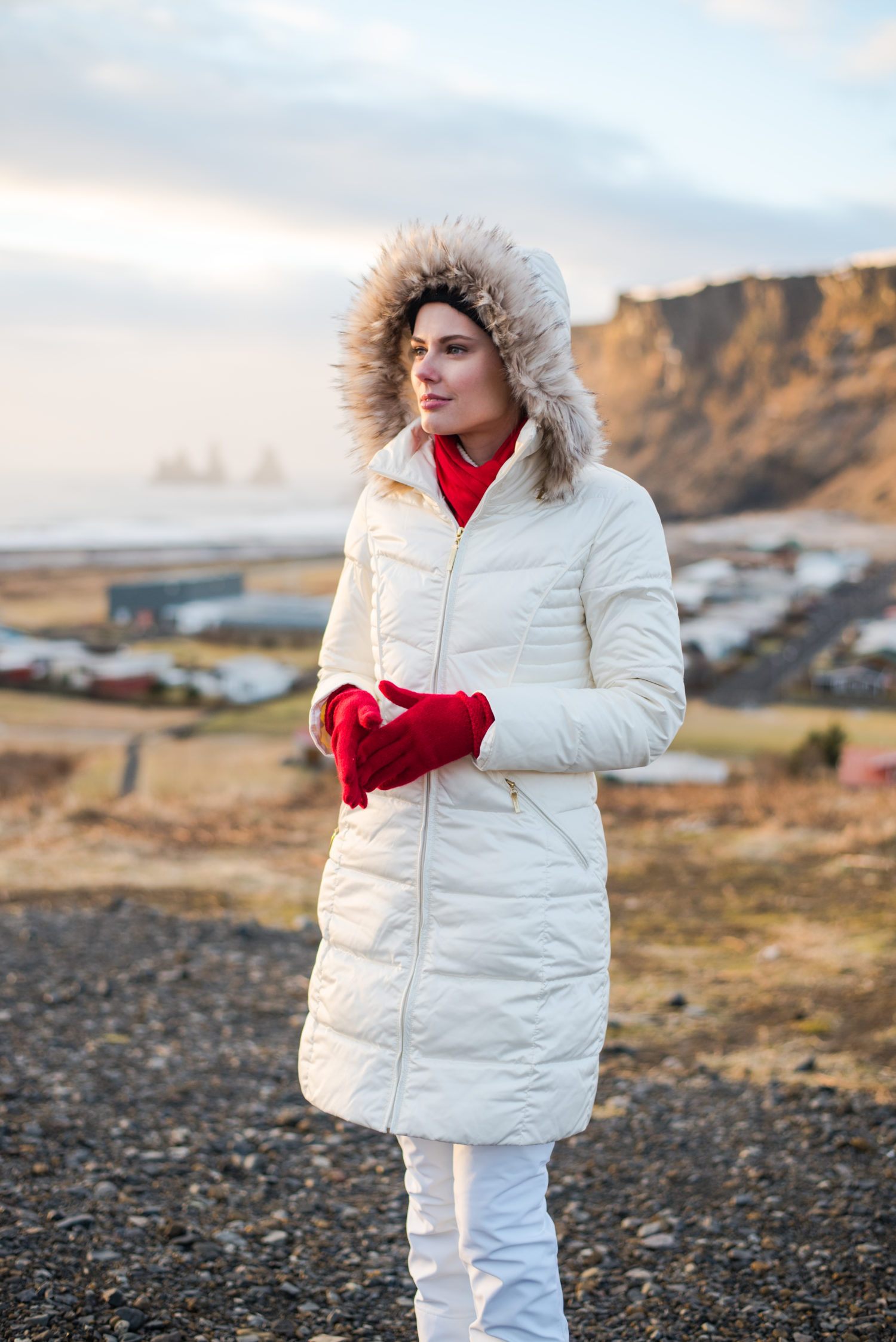 Miss USA 2011 Alyssa Campanella of The A List blog wearing Ellen Tracy faux fur coat in Iceland