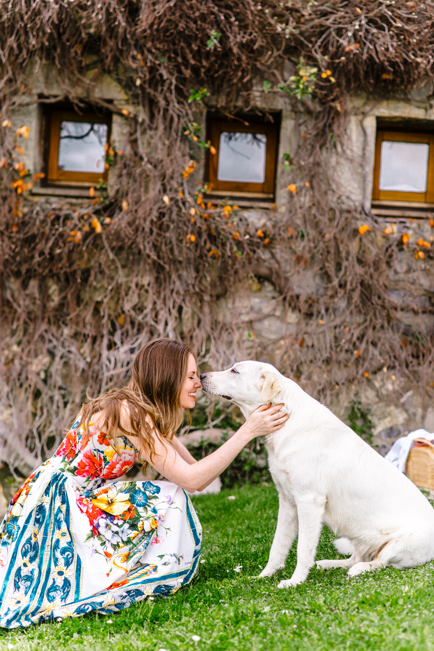 Alyssa Campanella of The A List visits Castello di Vicarello in Tuscany, Italy wearing Dolce & Gabbana Majolica dress