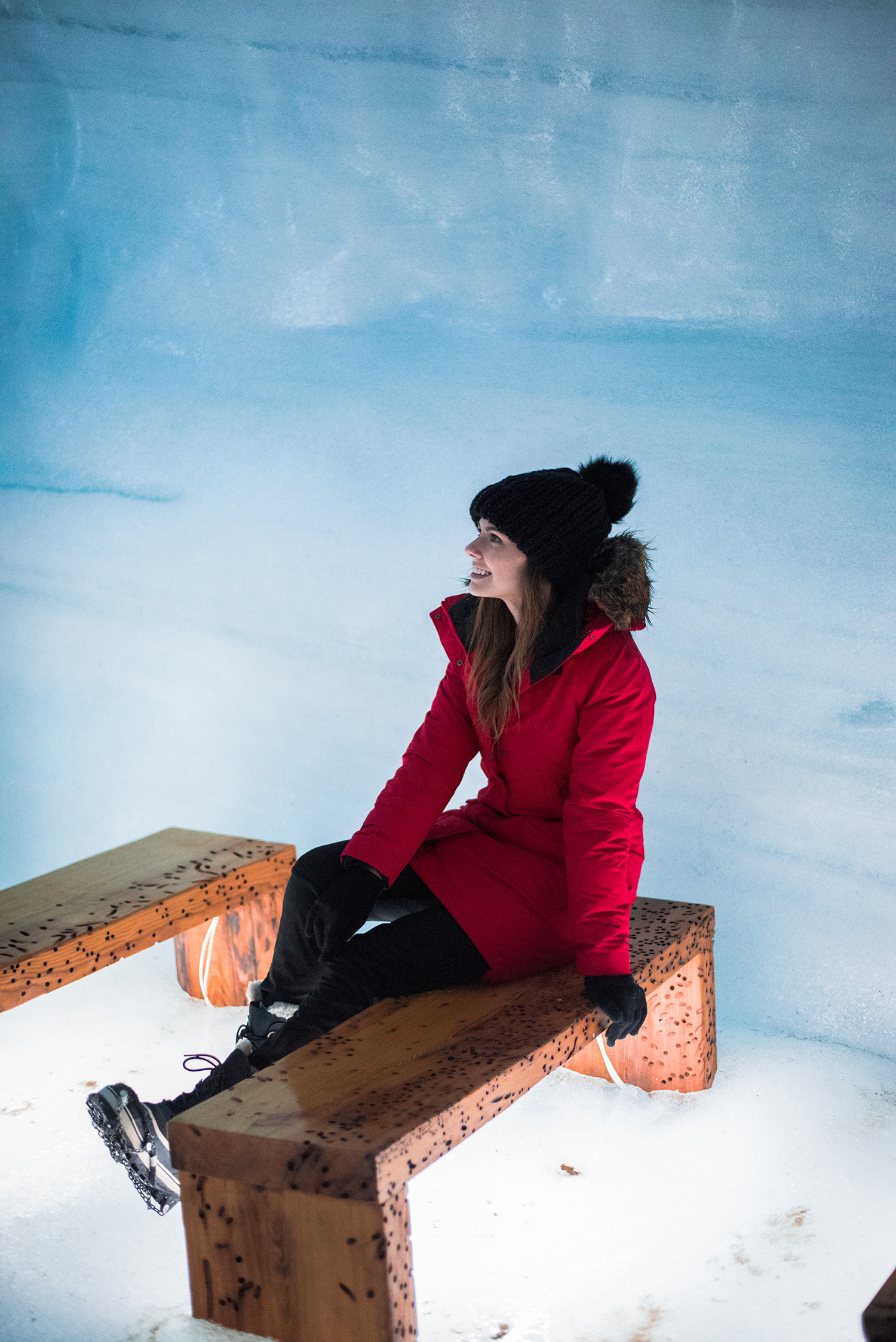Alyssa Campanella of The A List visits Langjokull with Into The Glacier in West Iceland wearing The North Face Outer Boroughs coat