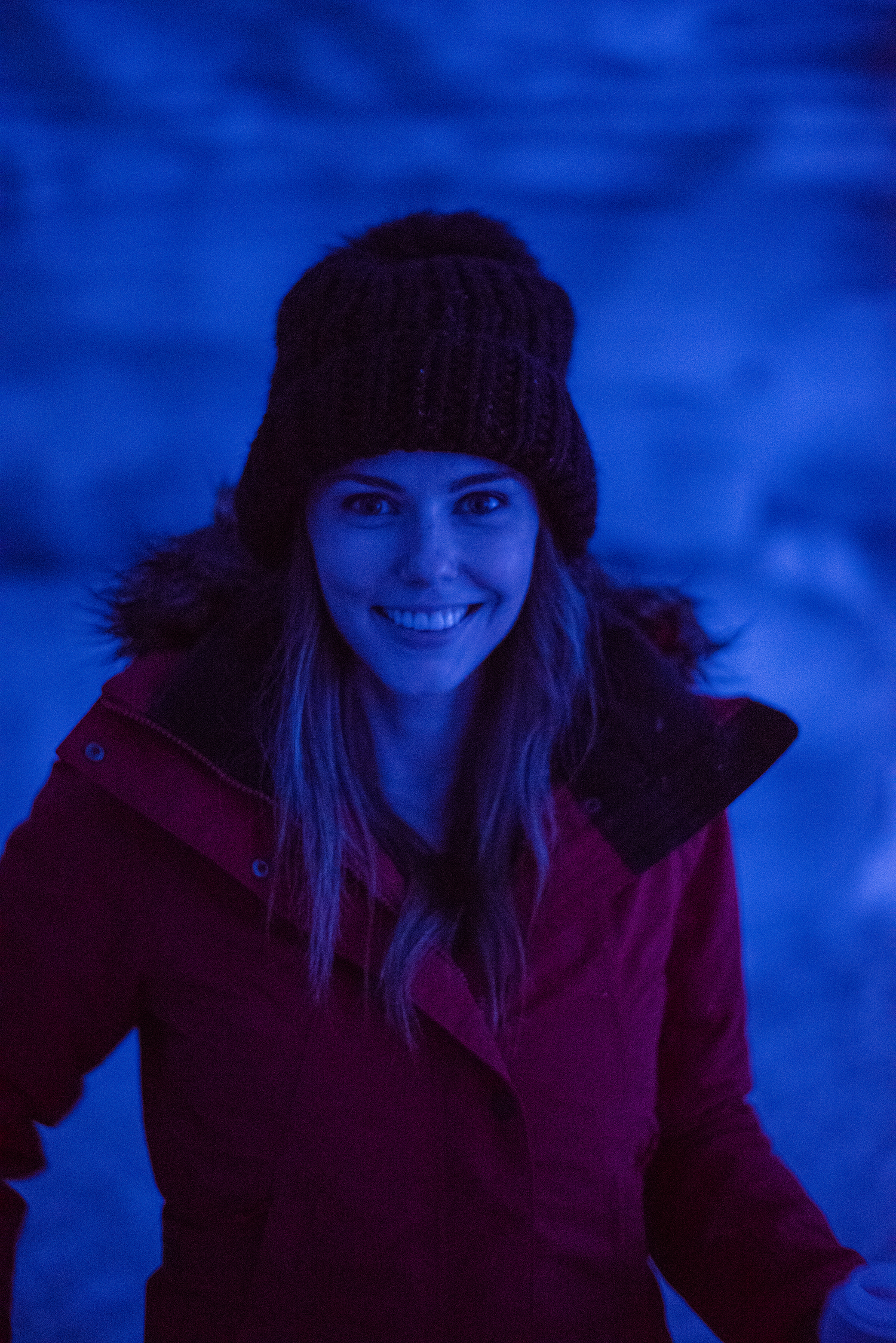 Alyssa Campanella of The A List visits Langjokull with Into The Glacier in West Iceland wearing The North Face Outer Boroughs coat
